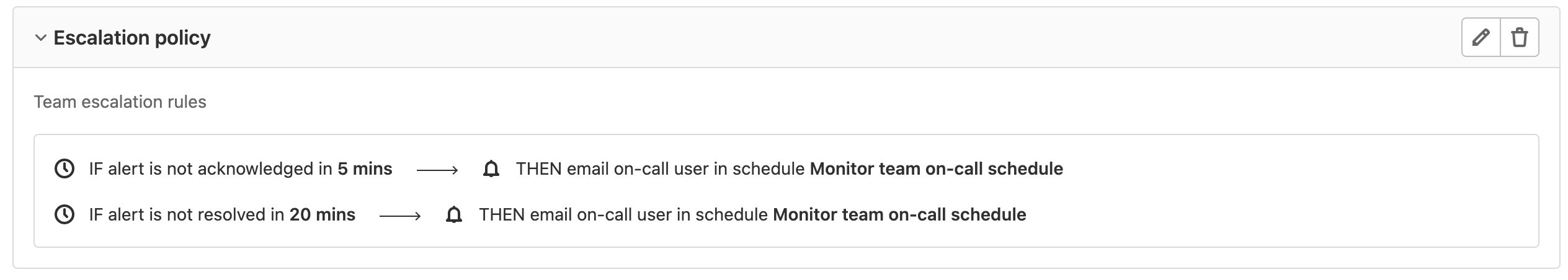 Escalation policies protect your company from missed critical alerts. Escalation policies contain time-boxed steps that automatically page the next responder in the escalation step if the responder in the previous step has not responded. You can create an escalation policy in the GitLab project where you manage on-call schedules.