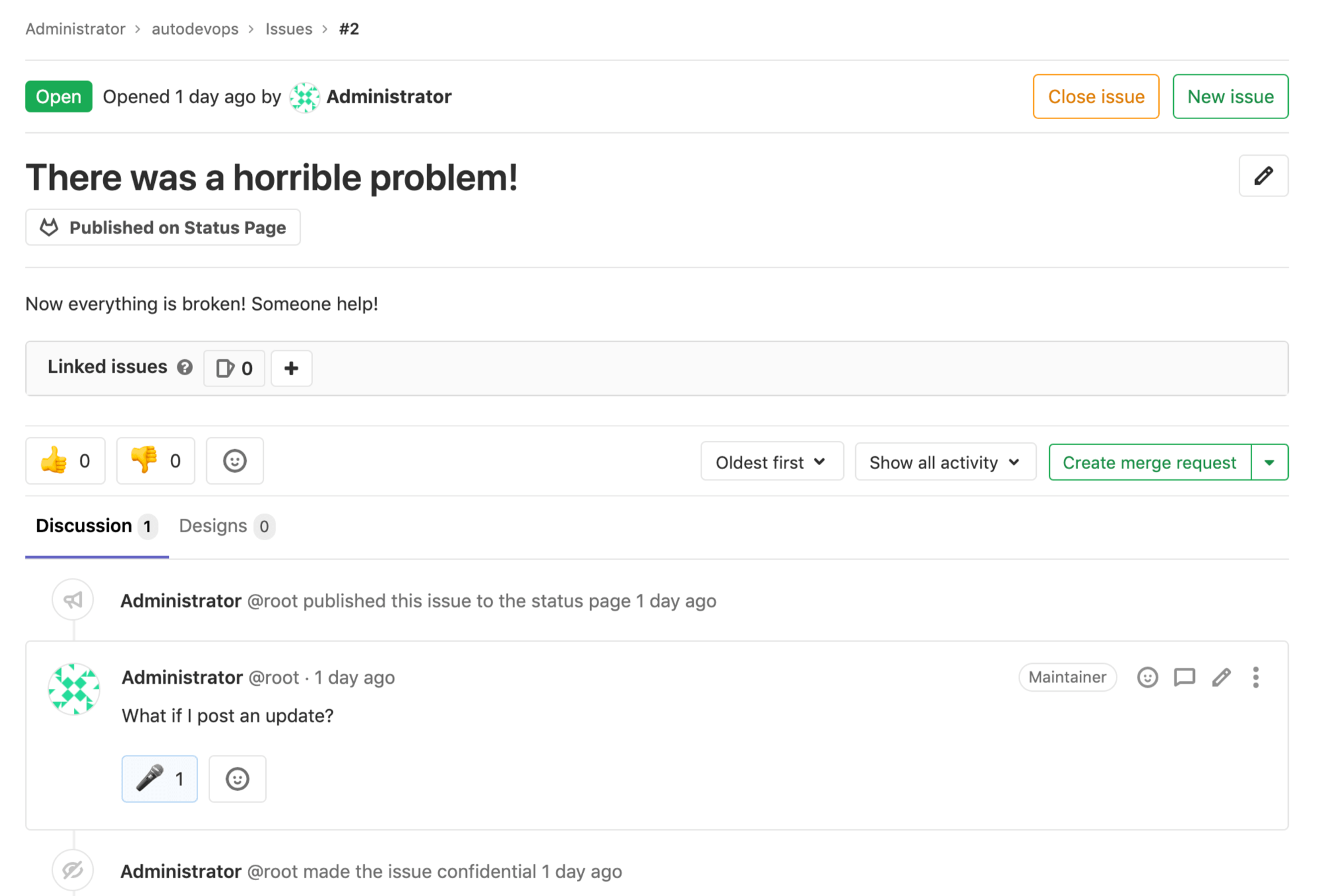 If you make a published incident confidential, GitLab unpublishes it from your GitLab Status Page website.