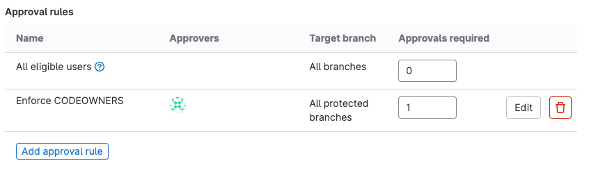 - Your approval rule encourages (in GitLab Free) or requires (in GitLab Premium and GitLab Ultimate) the subject matter experts to review changes.