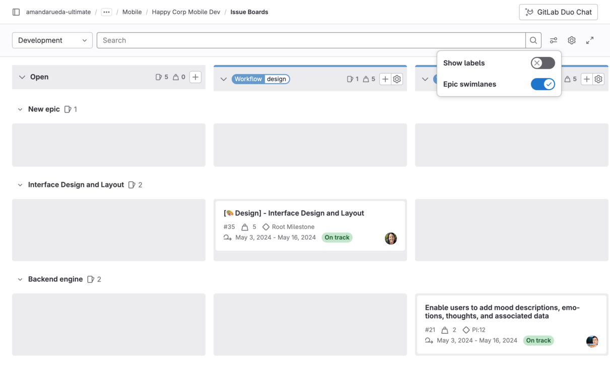 - Milestones and iterations shown on issue cards introduced in GitLab 16.11.